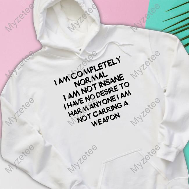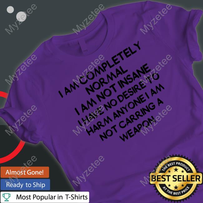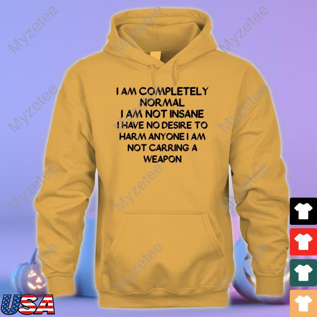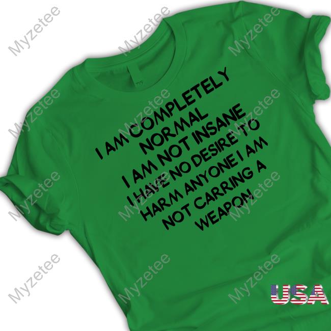 I Am Completely Normal I Am Not Insane I Have No Desire To Harm Anyone I Am Not Carring A Weapon T-Shirt Our Style: Men T Shirt, Women T Shirt, Long Sleeves, Hoodie, Sweatshirt Plus Size Our Size: S, M, L XL, 2XL, 3XL, 4XL, Plus Size T Shirt design, custom t shirts, graphic tees, custom t shirt design. Protect yourself with comfort and confidence